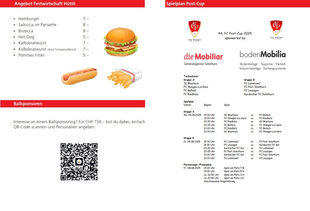 Seit 75 Jahren ist der FC Post Solothurn einer der führenden Sportvereine in der Stadt und Region Solothurn. Um die vielfältigen Herausforderungen bewältigen zu können, sind wir auf die Unterstützung unserer Partner:innen aus Gewerbe und Industrie angewiesen. Es würde uns sehr freuen, wenn auch du uns unterstützen würdest. Mittels zahlreicher attraktiver Werbe-Plattformen laden wir dich ein, Teil unserer Familie zuwerden und gemeinsam den (Fussball-)Sport in der Stadt Solothurn zu unterstützen.